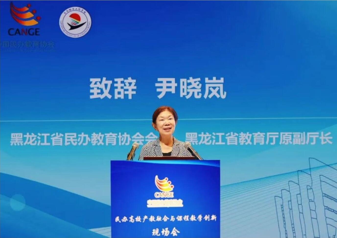 黑龙江省民办教育协会会长、黑龙江省教育厅原副厅长尹晓岚在致辞中代表黑龙江省民办教育协会,向参加会议的领导、专家学者致以衷心的感谢。她强调,黑龙江省始终坚持以习近平新时代中国特色社会主义思想为指导,深入贯彻落实党的二十大和党的二十届三中全会精神,将教育摆在优先发展的战略位置。目前,全省教育事业呈现高质量发展态势,此次会议的召开,必将为推进产教融合、促进课程教学创新注入新的活力与动力。
