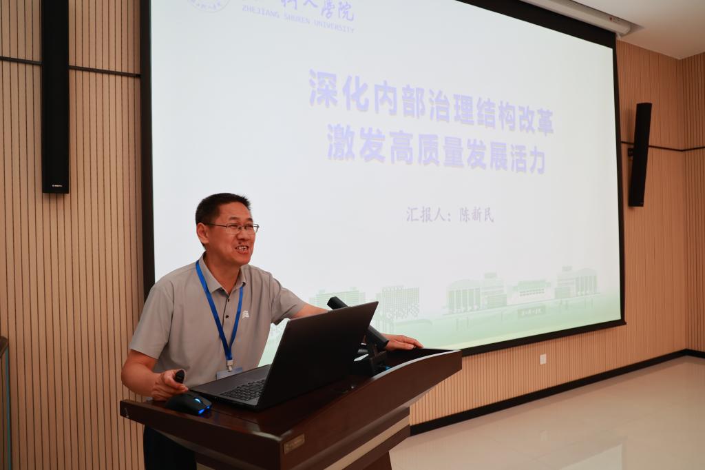 浙江树人学院副校长陈新民在“深化内部治理结构改革激发高质量发展活力”报告中介绍了树人学院的创校历程,从强化j9在线(中国),筑牢治理根基;健全治理制度,提升治理效能;完善治理结构,凝聚协同合力;拓宽治理路径,激发办学活力;抓住治理核心,加强队伍建设五方面进行分享,他表示,要牢记习近平总书记“三个贡献”殷切期望,探索民办高校高质量发展“树人之路”,朝着建设高水平应用型综合性大学目标扎实迈进。