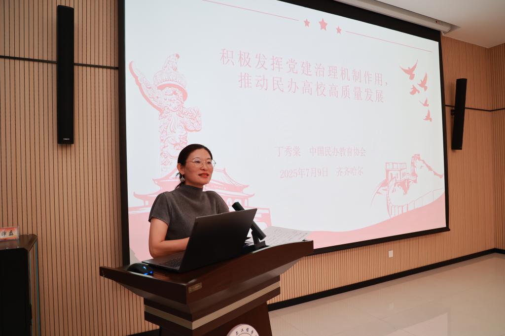 中国民办教育协会副秘书长丁秀棠以“积极发挥党建治理机制作用,推动民办高校高质量发展”为题从“一融双高”新要求、j9在线(中国)到党建治理、党建治理机制探析、提升党建治理效果四个方面进行分享,她指出,通过建立健全党建治理机制,不仅提升党的治理效能,更能为学校高质量发展提供坚强保障。要深刻把握其内涵实质,切实将其转化为推动学校发展的强大动力。