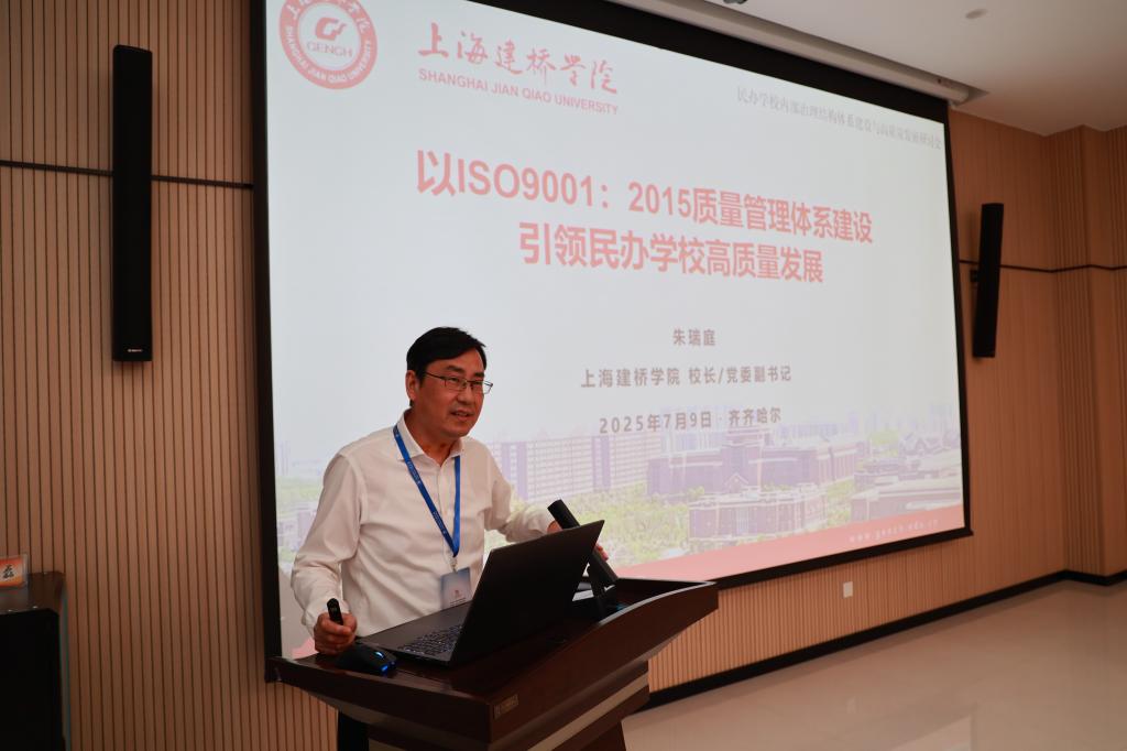 上海建桥学院校长朱瑞庭从探索历程、建设举措、实施成效三个方面分享了《以ISO9001:2015质量管理体系建设引领民办学校高质量发展》专题报告。提出,ISO9001标准是对质量管理规律的科学总结,是世界范围内通用于企业、非营利组织和政府机构的应用最为广泛的质量标准,也是迄今为止世界上最成熟的一套管理体系和标准,它规定了优良管理的基本原则、管理边界、工作流程,对于管理基础薄弱、人员流动较大,领导层变更比较频繁的民办高校来说,有其适用性。