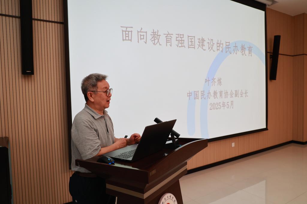 中国民办教育协会特邀副会长叶齐炼讲话,他以“面向教育强国建设的民办教育”为题,从影响中国十年教育走向和发展的政策、规范发展是大趋势两个方面展开详细的论述,谈及构建七个“体系”实现从大国教育向强国教育的转变时,指出,全面构建固本铸魂的思想政治教育体系;公平优质的基础教育体系;自强卓越的高等教育体系;产教融合的职业教育体系;泛在可及的终身教育体系;创新牵引的科技支撑体系;素质精良的教师队伍体系;开放互鉴的国际合作体系。