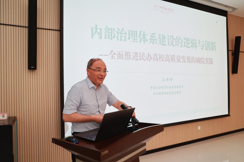 中国民办教育协会监事会监事王世伦以“内部治理体系建设的逻辑与创新”为题,系统分享了学院推进高质量发展的实践探索。报告从内部治理的重要地位、内部治理的主要逻辑、内部治理的实践应用、城院实践的典型成效四个方面进行阐述。在总结实践经验时,王世伦重点强调了三大关键做法:坚持目标管理(绩效考核)、坚持系统思维(整体推进)、坚持建强队伍(团队作战)。