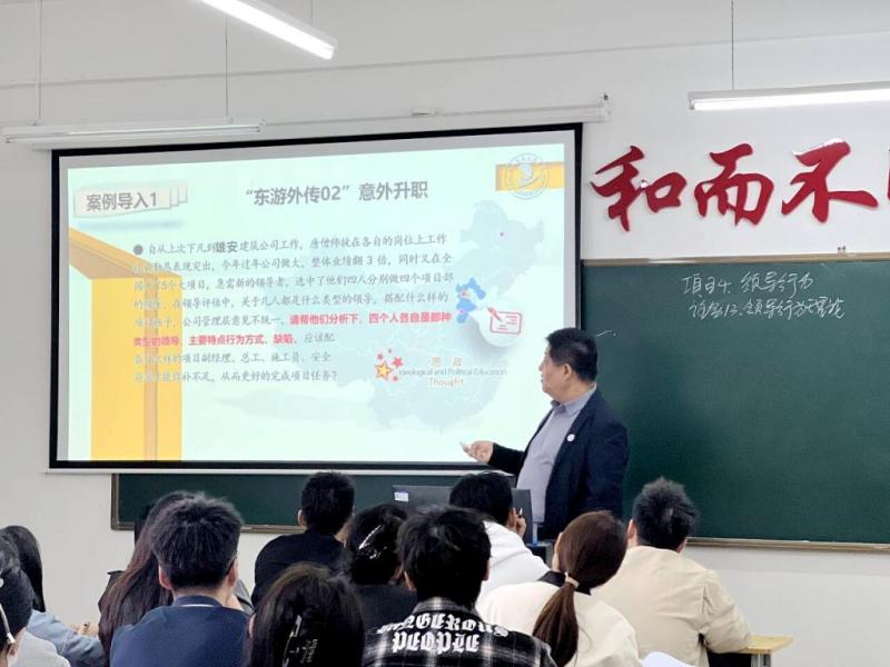 建筑工程系梁海老师,在《组织行为学》的课堂上,充分利用了他30余年的丰富项目实践经验。他将深奥的理论与鲜活的实例紧密结合,通过引入学校校园北区项目的实际案例来深入剖析领导行为,教育学生培养职业荣誉感和领导责任意识。