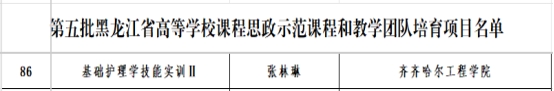 近日,黑龙江省教育厅对第五批高等学校课程思政示范课程和教学团队培育项目、2024年课程思政优秀教学案例名单进行公示。根据公示结果,我校共1门课程入选示范课程和教学团队培育项目,3门课程获评优秀教学案例,课程思政建设再获佳绩。医学院张林琳老师的《基础护理学技能实训Ⅱ》课程入选课程思政示范课程和教学团队培育项目;机电学院甄彩霞老师的《科技报国——电气控制技术的独特魅力》、土木与管理学院李俊老师的《探“图之路”,塑“匠之魂”——建筑平面图的识图与绘图》、土木与管理学院王梓玮老师的《“时光之金”:资金时间价值揭秘与校园贷警示下的风险防控意识培养》3门课程入选课程思政优秀教学案例。