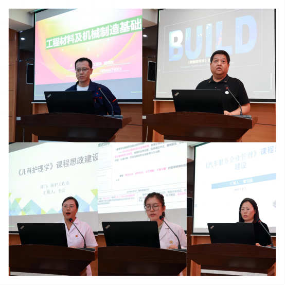 参赛教师们精神饱满、教态自然,设计新颖、环节严谨、教法巧妙,在16分钟内为大家展现了清晰的教学思路和巧妙的课程设计。教师们结合课程特点,深入挖掘课程蕴含的思想政治教育元素,在教学设计中有机融入家国情怀、文化自信、社会责任、科学精神、人文素养、亮剑精神等思政元素,将教书和育人相统一,展示了各具特色的“课程思政”教学风采。