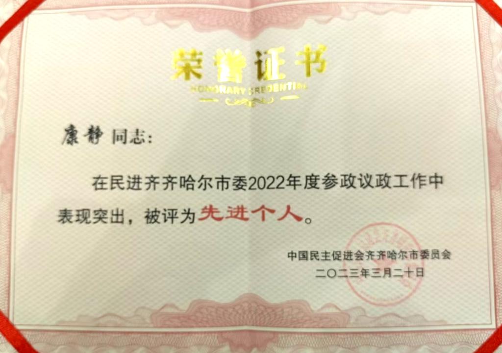 3月20日,中国民主促进会齐齐哈尔市委员会发布了“关于表彰2022年度参政议政工作先进集体、先进个人的决定”,我校教师康静获“先进个人”荣誉称号。 为表彰先进,提升委员参政议政的能力和水平,经中国民主促进会齐...