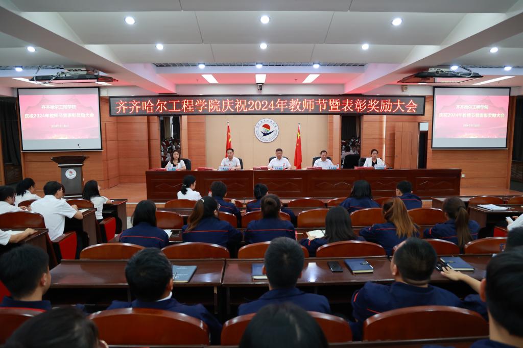 在第40个教师节到来之际,9月10日下午,学校在图书馆601报告厅召开庆祝2024年教师节暨表彰奖励大会。创校校长、理事长曹勇安、院长曹然彬、党委书记郭伟东、党委副书记、常务副院长陈景鑫,副院长张静出席会议,获奖教师、获奖集体代表、全体干部、各基层党组织成员代表参会,其他教职工线上参会。大会由陈景鑫主持。会议在雄壮的国歌声中拉开帷幕,全体起立,奏唱中华人民共和国国歌。郭伟东宣读《关于奖励全省教育系统师德先...