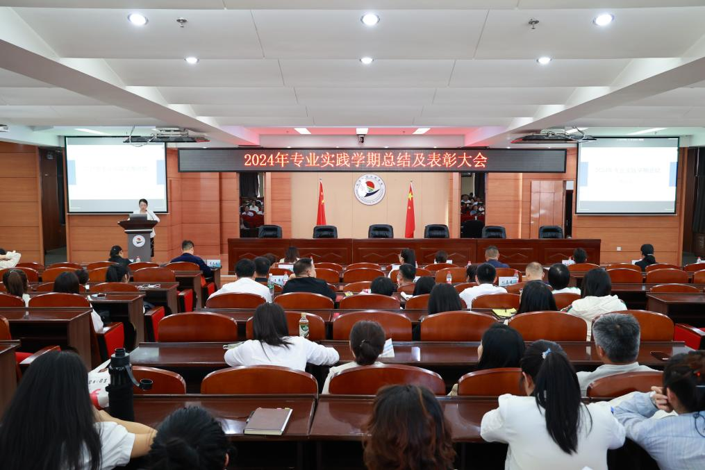 为总结2024年专业实践学期建设成效,表彰表现突出的学生、教师及合作企业,总结经验,展望未来,进一步推动校企合作向更深层次发展,9月25日下午,2024年专业实践学期总结表彰大会在图书馆601报告厅召开。党委副书记、常务副院长陈景鑫,副院长张静,教务处副处长李文禹,学生工作处负责人王丽萍,各教学单位主任、副主任,获奖师生代表及企业代表线下参会,其他单位教师及企业指导教师线上参会。会议由教务处副处长郝丽娜主...