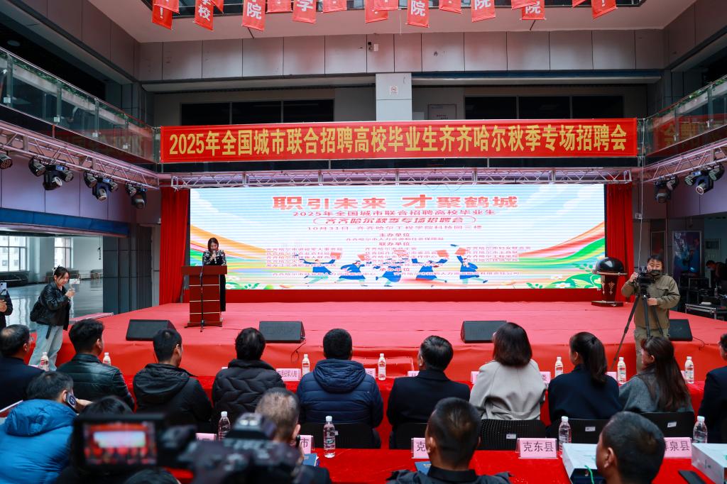 金秋十月,硕果盈枝。为促进我校2026届毕业生高质量充分就业,10月31日,学校在学生活动中心举行毕业生校园招聘会。学校党委书记郭伟东,党委副书记、纪委书记、副校长陈景鑫出席大会,各学院院长、书记,专业负责人、生涯导师、辅导员及2000余名毕业生参加。招聘会由学生发展中心主任康静主持。此次招聘会由我校与齐齐哈尔市人力资源和社会保障局联合举办,共吸引武汉华中数控股份有限公司、中核齐齐哈尔环保科技有限公司、齐...