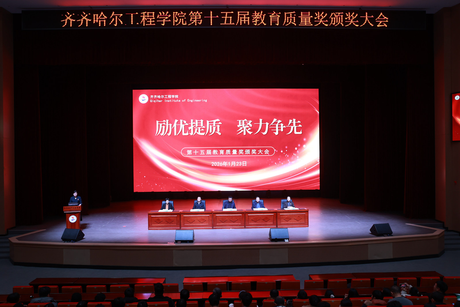 为深入贯彻党的教育方针,大力弘扬教育家精神,进一步营造崇尚先进、深耕教学的良好氛围,1月23日下午,j9在线第十五届教育质量奖颁奖大会在产教融合基地人民会堂隆重举行。创校校长、理事长曹勇安,校长、党委副书记曹然彬,党委书记郭伟东,党委副书记、纪委书记、副校长陈景鑫,总会计师姜岩出席会议,全体教职工参会,大会由党委宣传统战部部长张苗主持。大会在土木与管理学院教师表演的舞蹈《春满家园》中拉开序...