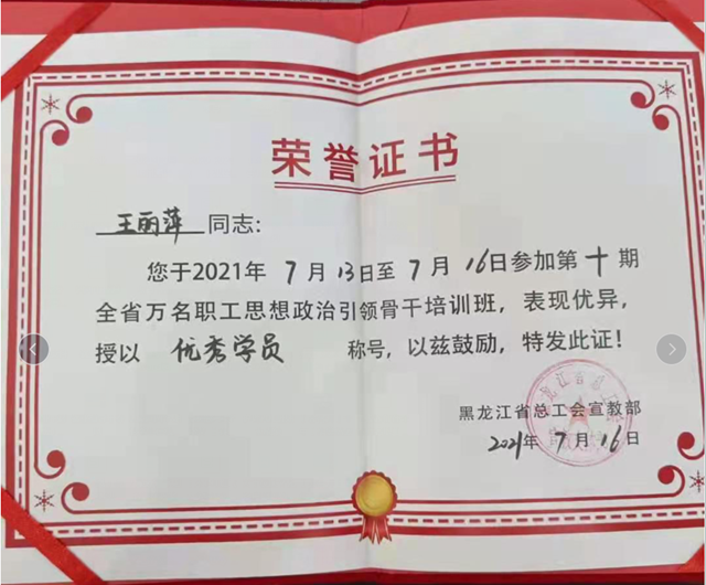 7月13日至16日,由黑龙江省总工会举办的“全省万名职工思想政治引领骨干培训女职工骨干专期”培训班在哈尔滨举行,共有来自全省的女工会干部、女劳模、女职工先进代表200多位巾帼学员参加培训。我校工会副主席王丽萍...