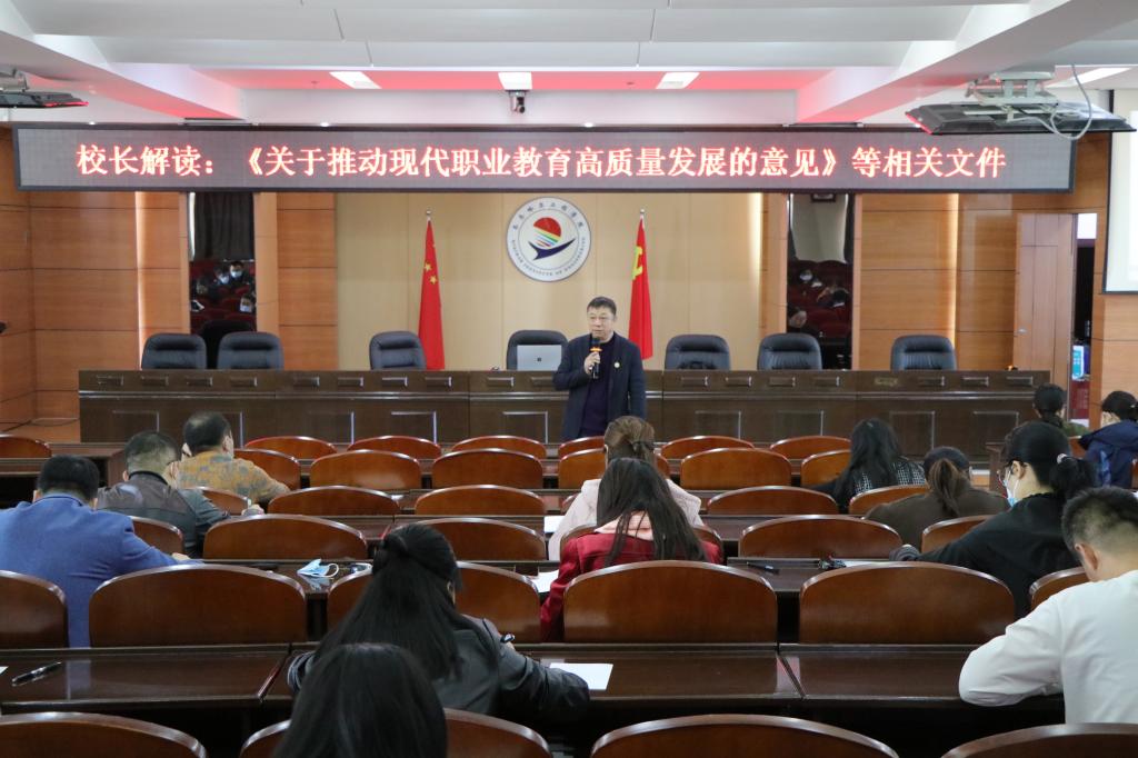 10月16日上午,曹勇安理事长把《国家职业教育改革实施方案》《关于推动现代职业教育高质量发展的意见》《关于进一步支持大学生创新创业的指导意见》三个重要文件做了88处亲笔批注,面对全校教职工进行了近两个半小时...