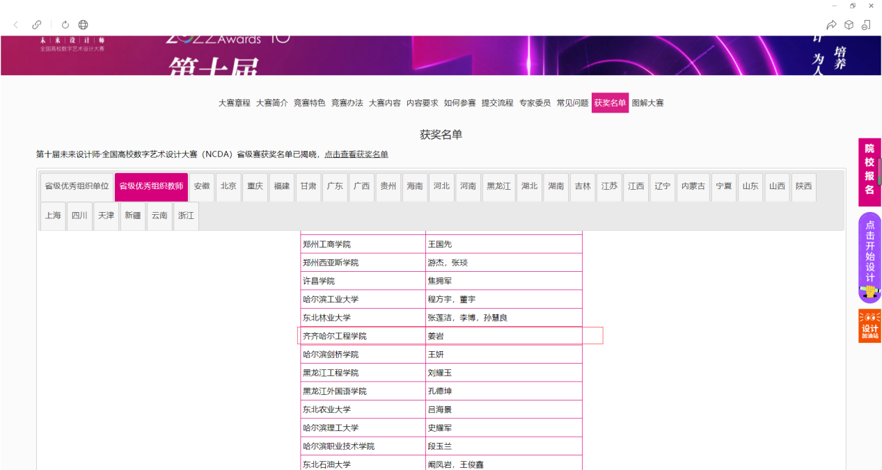 近日,2022第十届全国高校数字艺术设计大赛圆满落幕。我校获省级优秀组织单位奖;信息工程系姜岩老师获省级优秀组织教师奖;荆晓娜、柳圳、周震海同学参赛作品获省赛区一等奖;曲敬娴、杨倩倩、陈玲、王智颖、范玉伟...