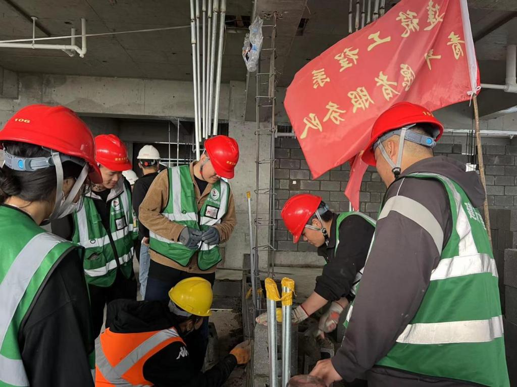 随着校园北区建设项目一标段学生公寓和人民会堂的主体结构封顶,建筑工程系产业学院实践班学员的校外课堂进入了一个新的阶段。5月22日,建筑工程系产业学院实践班“中建班”学员选定了学生公寓A栋,九层北侧的“样板间”进行施工。项目总工孙大伟正在进行技术指导 企业指导教师讲述砌块施工要领从最初的场地清扫,到测量放线,再到砌块的砌筑、铺浆,企业指导教师手把手教,实践班学员认真聆听。项目总工孙大伟表示,现阶段“...