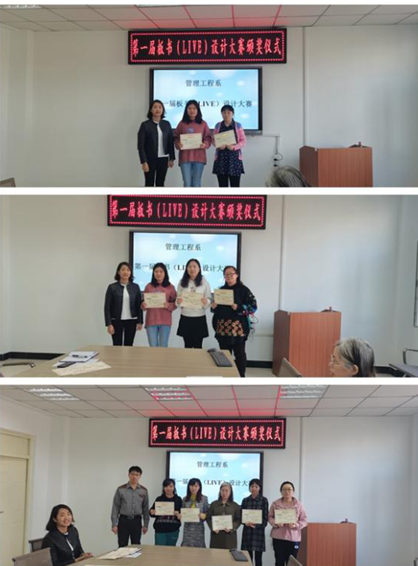 为夯实教师教学基本功,管理工程系于4月12日至23日举办了第一届板书(LIVE)设计大赛,并于4月27日下午,在2号教学区2209会议室举行了板书(LIVE)设计大赛颁奖仪式。 教学板书是教学设计不可缺少的部分,它不仅是教...