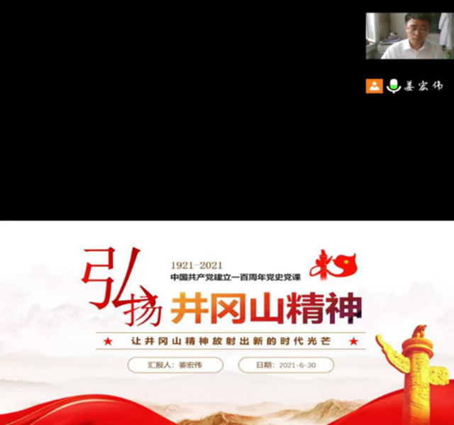 2021年6月30日,健康护理专业学生党支部利用腾讯会议召开“弘扬井冈山精神”专题党课,由学生党支部书记姜宏伟主持,学生党支部全体成员参加。 支部书记姜宏伟在会中为大家讲述井冈山精神产生的背景、基本内涵、现实...
