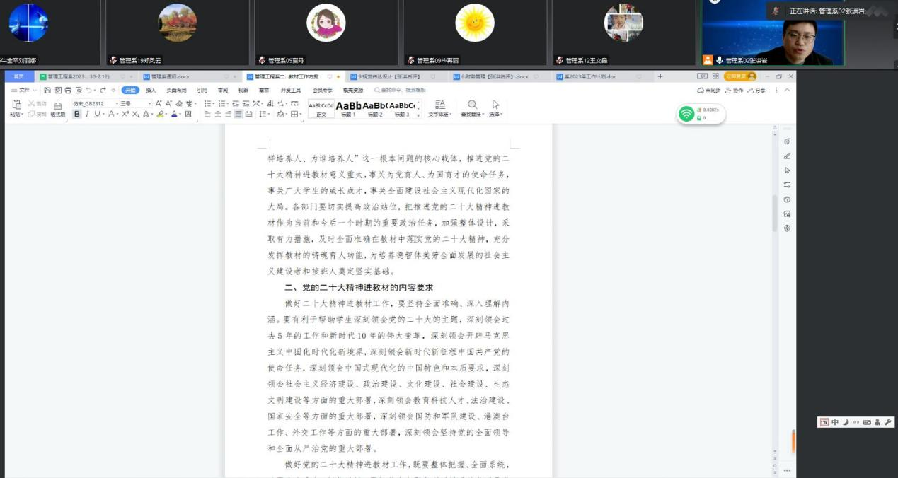2月3日下午,为了做好党的二十大精神进教材工作,管理工程系教学工作副主任张洪岩组织全系教工线上进行培训学习。 张洪岩首先带领全体教工学习了党的二十大报告以及习近平总书记在党的二十届一中全会上的重要讲话精神...
