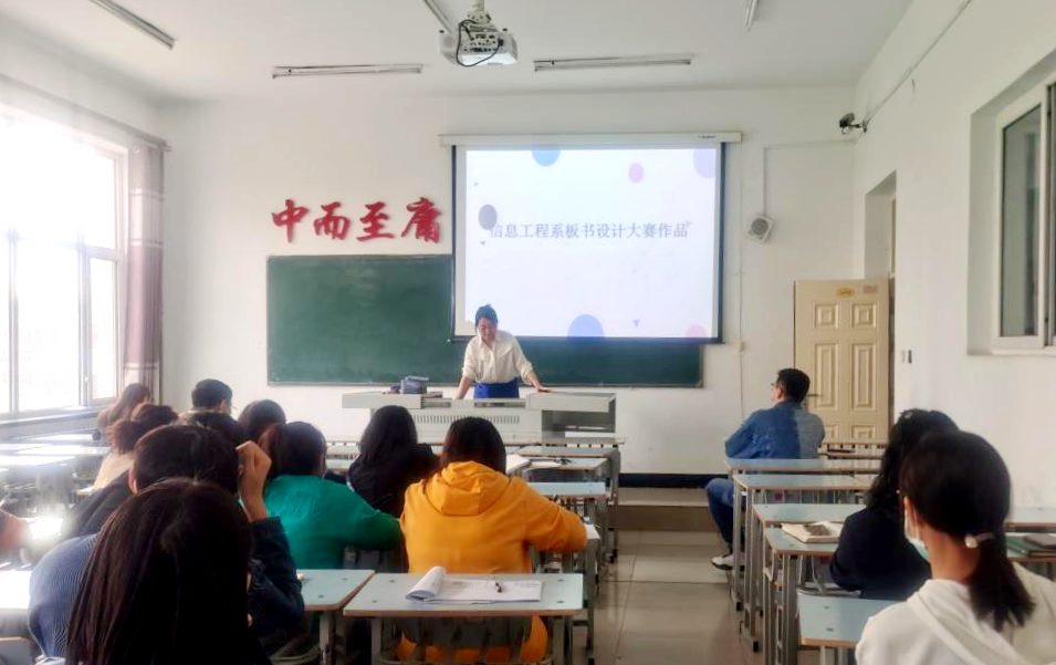 5月9日下午,信息工程系在一号教学区1413教室开展板书设计大赛活动。系副主任刘春媛和全体教师参加,教学工作副主任姜岩主持。 活动中,姜岩带领全系教师对板书的设计展开进一步研讨,对参加板书设计大赛的30幅作品进...