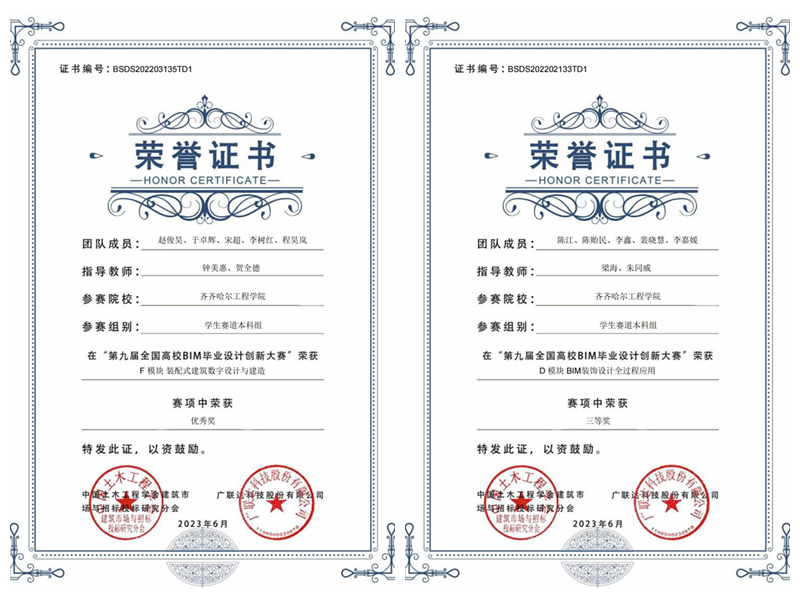近日,由中国土木工程学会建筑市场与招标投标研究分会、广联达科技股份有限公司主办的第九届全国高校BIM毕业设计创新大赛总决赛圆满落幕。建筑工程系徐明与郝丽娜老师,土木工程专业钟美慧与贺全德老师,工程管理专业...