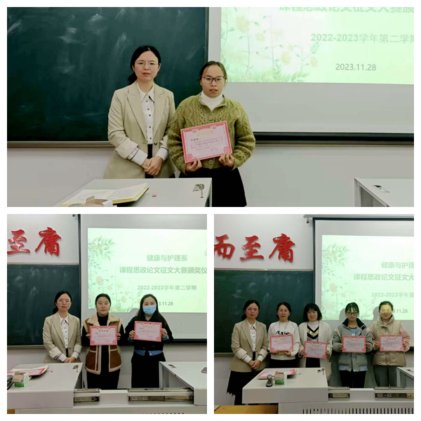 11月28日下午,健康与护理系在一号教学区1213教室举行教职工会议及思政征文比赛颁奖仪式。由健康与护理系主任郭玲玲主持,全体教职工参加。会议伊始,吴迪、尹娜、吴丽娜三位老师分别对外出考察学习作了汇报。吴迪对赴上海量健健康管理公司为学生进行中医手法培训进行介绍,对学生的表现给予肯定,表示学生能在最短的时间内掌握正确的推拿技巧,实践动手能力得到加强,同时也促进了健康管理业绩的提高。尹娜结合研讨会上多位获...