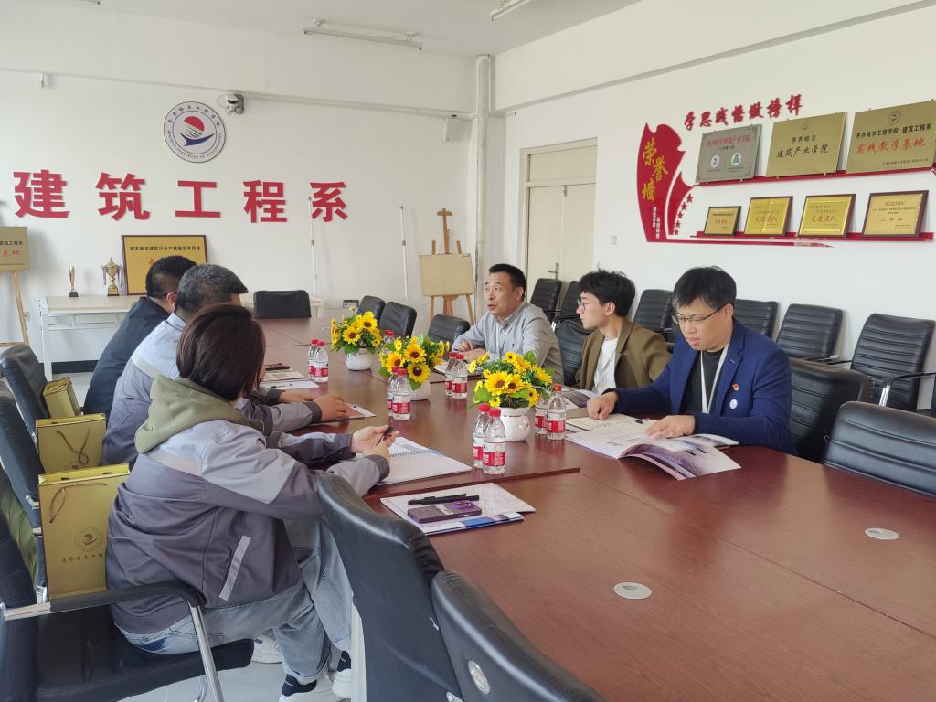 为进一步落实学校访企业课改工作要求,深化校企合作,构建优质校外课堂,拓宽学生就业渠道,提高学生就业质量,4月17日下午,建筑工程系与齐齐哈尔水投建设发展有限公司副总经理杜昌明一行在二号教学区2409会议室洽谈校企合作事宜。系主任助理王梓玮、党总支副书记刘贤鹏、土木工程专业助理、建筑产业学院副院长贺全德等参加洽谈会。王梓玮对杜昌明一行来校表示欢迎,并介绍了建筑工程系的专业设置、应用型人才培养、专业实践学...