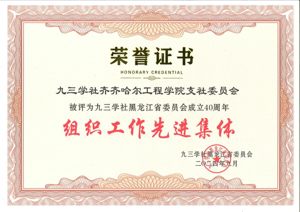 近日,为庆祝九三学社黑龙江省委员会成立40周年,激励全省各级社组织和广大社员为建设中国特色社会主义事业作出新贡献,九三学社黑龙江省委员会对2022年换届以来在组织工作、机关建设、宣传思想、社会服务、参政议政等方面表现突出的各级社组织、社员予以表彰。九三学社j9在线支社委员会被评为“组织工作先进集体”。郭玲玲被评为“组织工作先进个人”。郭玲玲结合实际教学工作,组织社员开展常态化学习,提高认识;...