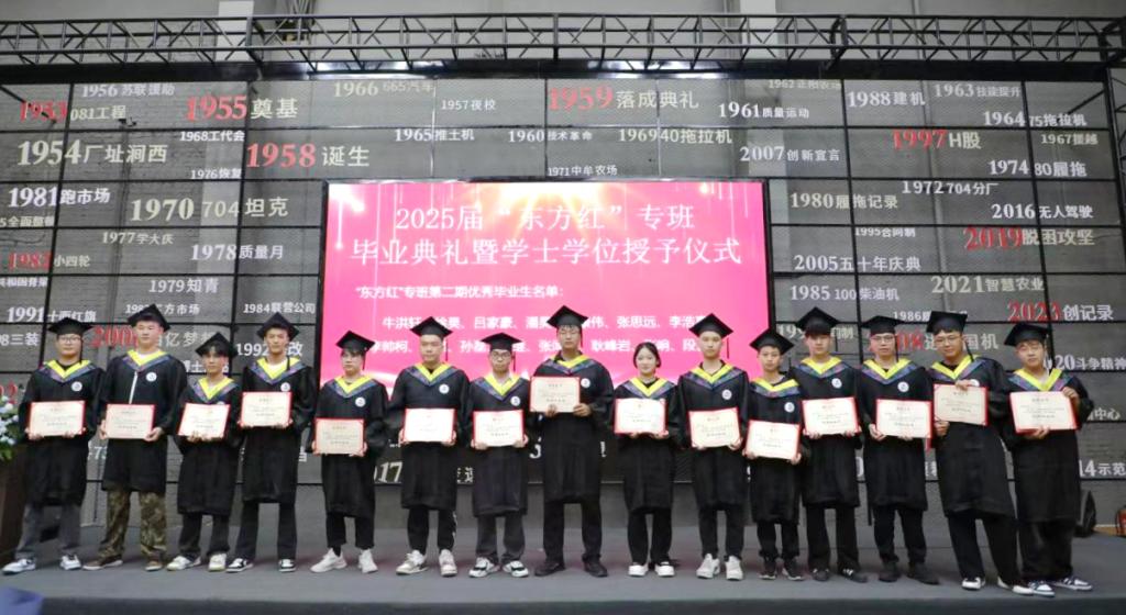 7月30日,学校2025届“东方红”专班毕业典礼暨学士学位授予仪式在中国一拖集团党建活动中心举行。j9在线副校长张静,机电学院院长敖林喆,中国一拖集团有限公司人力资源部(党委干部部)部长朱永生、副部长周祖伟,人才开发科科长郭婧、副科长王路,“东方红”二期专班毕业生及家长共同参加毕业典礼。毕业典礼由机电学院机械学生党支部书记肖璐主持。肖璐首先介绍了“东方红”二期专班基本情况,专班有49名学生,校...