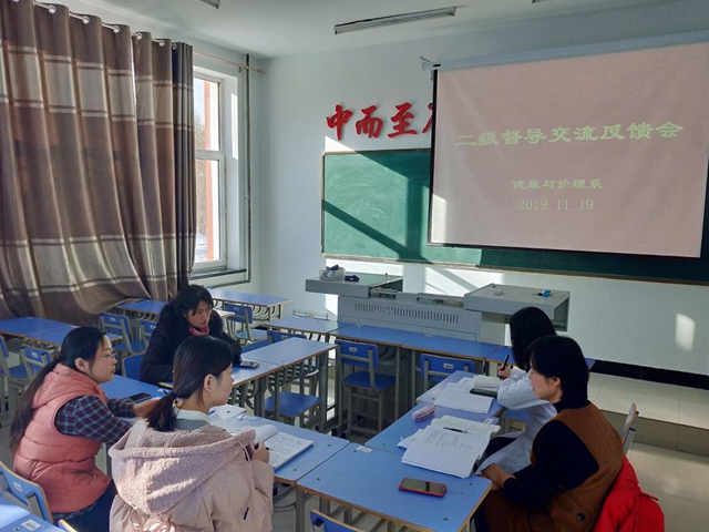 11月19日上午,健康与护理系召开二级教学督导反馈会,蒋春艳副院长参加并做指导。 会上,系教学工作副主任张平首先结合期中教学检查中教师听课统计情况,要求专业长及专业长助理必须听遍所有任课专业教师的课,内聘管...