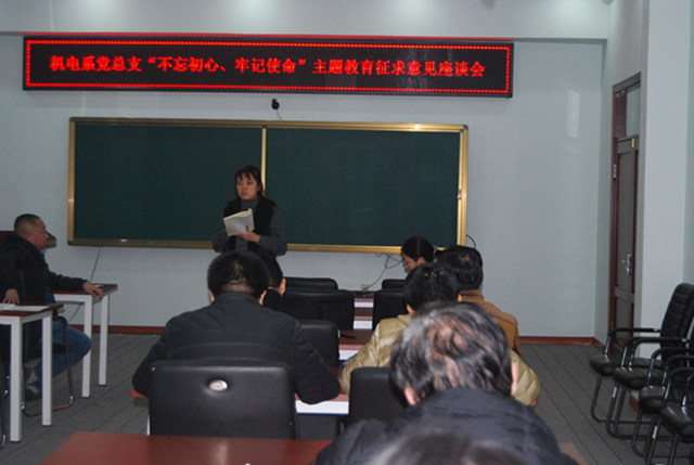 11月19日下午,机电工程系党总支召开“不忘初心、牢记使命”主题教育征求意见专题座谈会。党员同志在座谈中敞开心扉、踊跃发言,开门见山地摆问题、提意见,就如何细化主题教育活动、加强党员教育管理和培养锻炼、解...