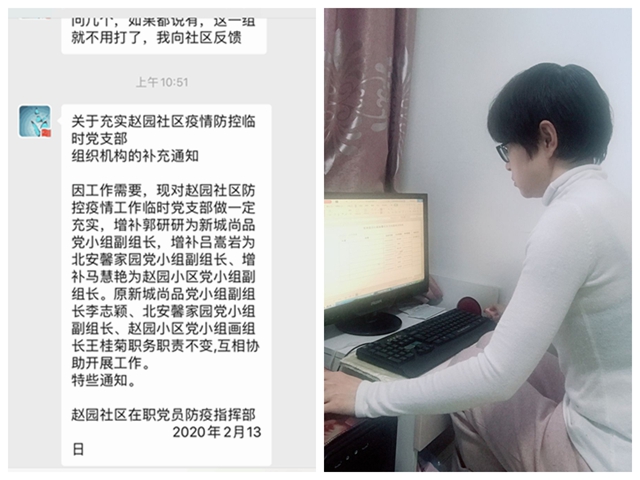 家住齐齐哈尔市龙沙区安馨家园小区的基础部党员教师高敏同志,积极参加社区疫情防控志愿服务,自2月7日起,承担了安馨家园党小组疫情防控信息的整理工作,撰写每日工作总结,上报每天党员值班工作情况。2月13日,她接...