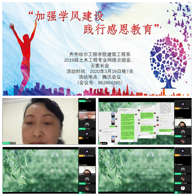 新冠肺炎疫情防控期间,为加强家校沟通,携手共育促进学生成长,建筑工程系风景园林专业于3月17日晚,通过腾讯会议平台召开云班会及云家长会。 系党总支书记、学生工作副主任王丽萍,风景园林专业长宋兴雷、辅导员黄...