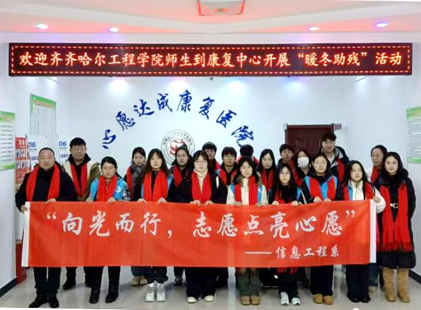 1月9日,信息工程系在社会实践学期期间,赴社会实践基地——双鸭山市“心愿达成”启智康复中心,开展“向光而行,志愿点亮心愿”志愿服务活动。信息工程系党总支副书记孙晓芳、团总支书记史云辉、辅导员胡欣月及系内骨干学生参加。本次活动由信息工程系党总支牵头,信息工程系团总支与双鸭山市残联承办。双鸭山市残联副理事长李薇、“心愿达成”启智康复中心主任胡艳丽对学校师生一行热情接待。 活动期间,孙晓芳向康复中心代表...