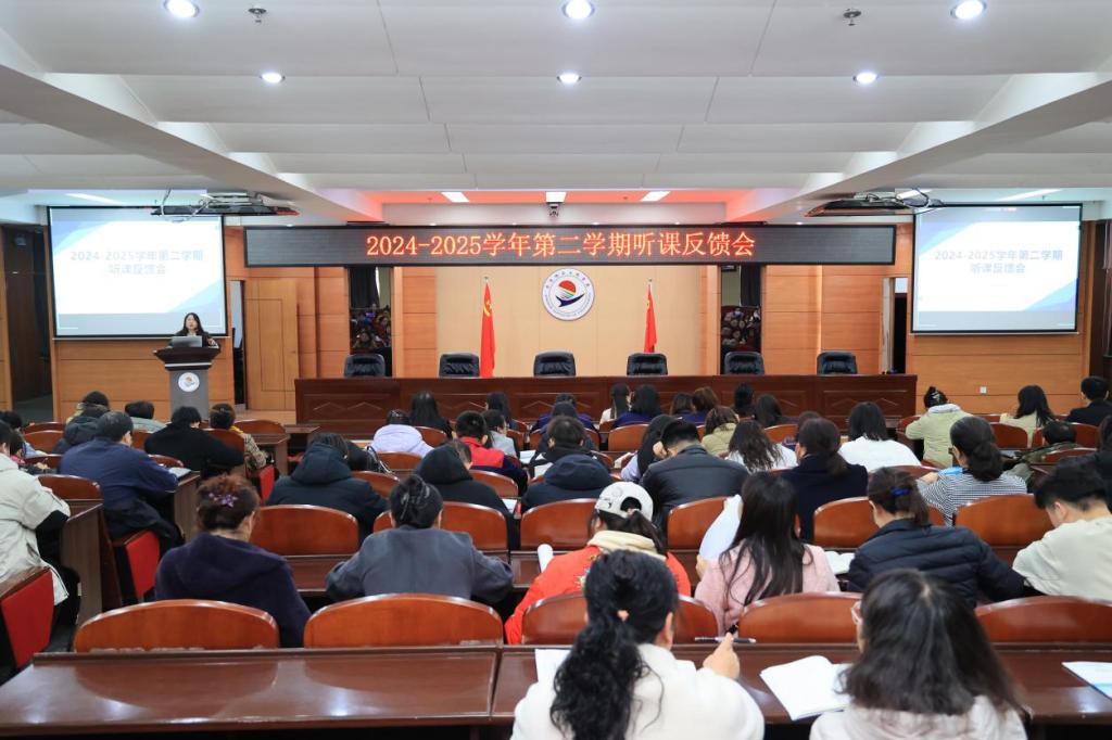 为深入掌握课堂教学动态,持续提升教学质量,推动学校教育教学高质量发展,3月10日下午,教务处在图书馆601报告厅召开2024-2025学年第二学期第一次听课反馈会,副院长张静出席会议并讲话。相关职能部门干部、教学副主任及教师线下参会,行政兼课及外聘教师线上参会。在新学期开课第一周,张静带领教务处干部共进行了17次听课,覆盖了全校6个教学单位。会上,张静首先分享了本学期课堂教学呈现出的诸多新气象、新亮点。在教学...