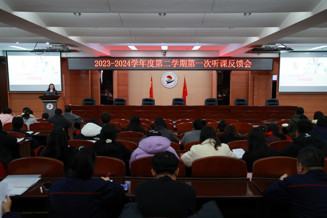 课堂教学是学校人才培养的主渠道,为全面提升课堂教学质量,3月8日上午,教务处在图书馆601报告厅召开2023-2024学年度第二学期第一次听课反馈会,教务处、全面质量管理办公室、教学管理干部及全体教师线上、线下参会,副院长张静主持。首先,张静肯定了谢伟东、贺全德等五位教师绪论课中的亮点,如“212”汇报赋分标准、知识图谱的应用、校园北区建设案例的引入等方面。随后,张静从基本教学条件、课堂教学、教学材料等方面进行...