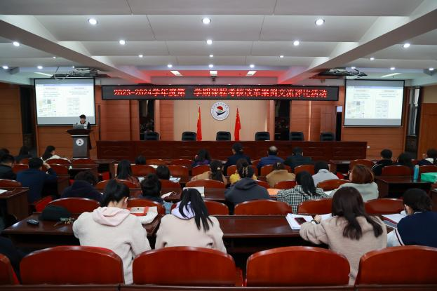 3月27日下午,学校在图书馆601报告厅组织开展了2023-2024学年度第一学期课程考核改革案例交流评比活动。各教学单位副主任担任评委。教务处副处长郝丽娜、各系领导及教师代表参会,教务处考务科科长张莹主持活动。本次活动是从全校17门考核改革试点课程中,遴选出6门参与交流。经过评委打分,最终评选出一等奖1名,二等奖2名,三等奖3名。选手汇报前,首先由所在部门领导介绍本部门的课程考核改革思路和改革特色。随后,选手从课...