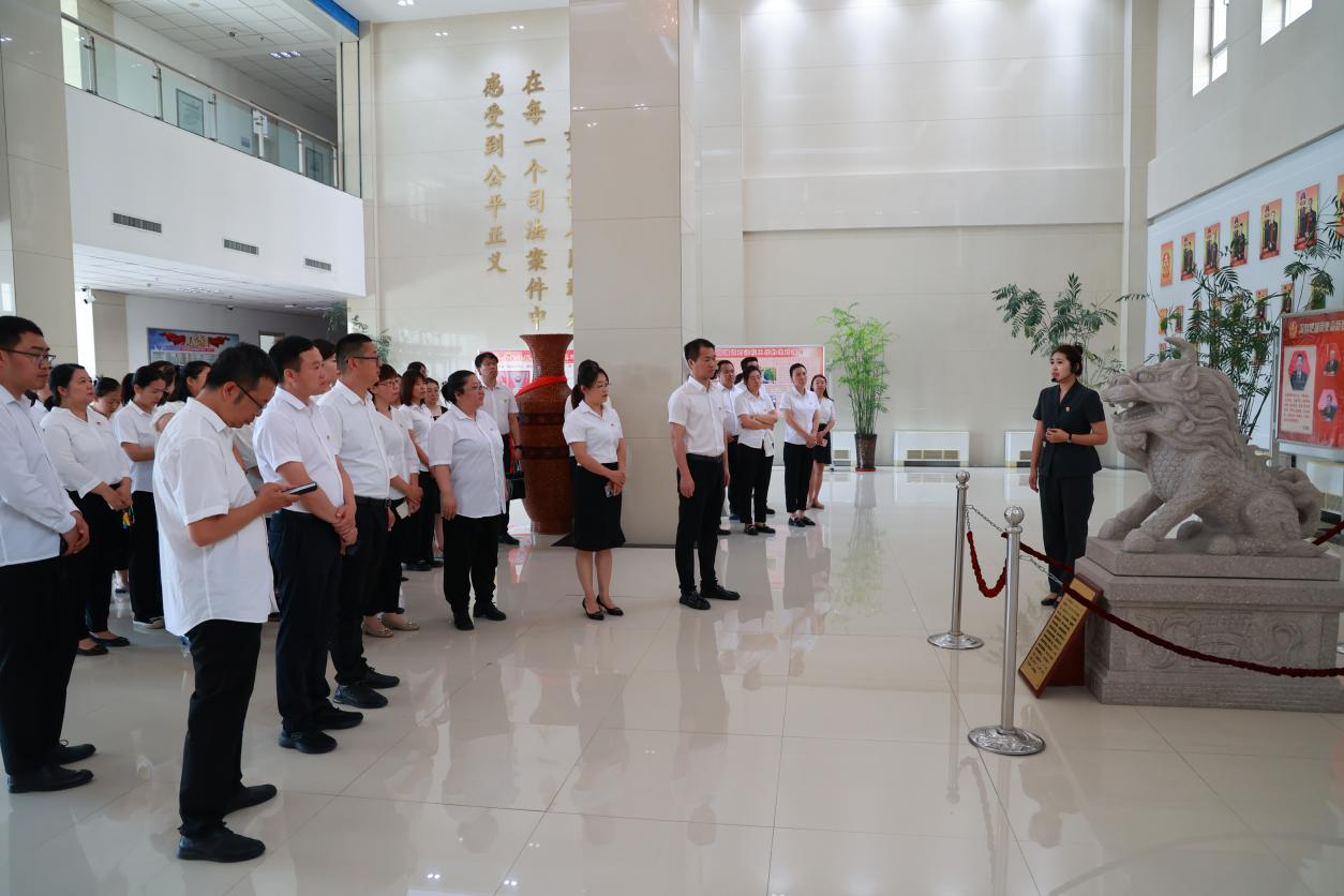 为进一步提高学校全体党员的政治站位,坚定理想信念,扎实推进党纪学习教育,不断增强党员廉洁自律意识和防腐拒变的能力。7月2日,学校党委书记郭伟东、副院长张静带队,50余名党员干部前往齐齐哈尔市中级人民法院法治教育基地参观学习。在讲解员带领下,全体党员依次参观了“光明新生”“艰苦创业”“文革时期”“改革开放”“盛世华章”五个展厅,认真聆听讲解员对齐齐哈尔市中级人民法院的历史沿革、珍贵文献资料以及审理的...