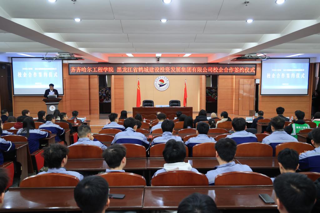 为进一步深化校企合作,推进产教融合,提升人才培养质量,实现优势互补,合作共赢,3月15日上午,学校与黑龙江省鹤城建设投资发展集团有限公司在图书馆601报告厅举行校企合作签约仪式。齐齐哈尔市审计局局长刘勇,齐齐哈尔市国资委副书记、副主任娄兴刚,齐齐哈尔市国资委主任王振东,黑龙江省鹤城建设投资发展集团有限公司党委书记、董事长李鸿波,黑龙江省鹤城建设投资发展集团有限公司党委副书记、总经理姚贵伟,齐齐哈尔鹤...