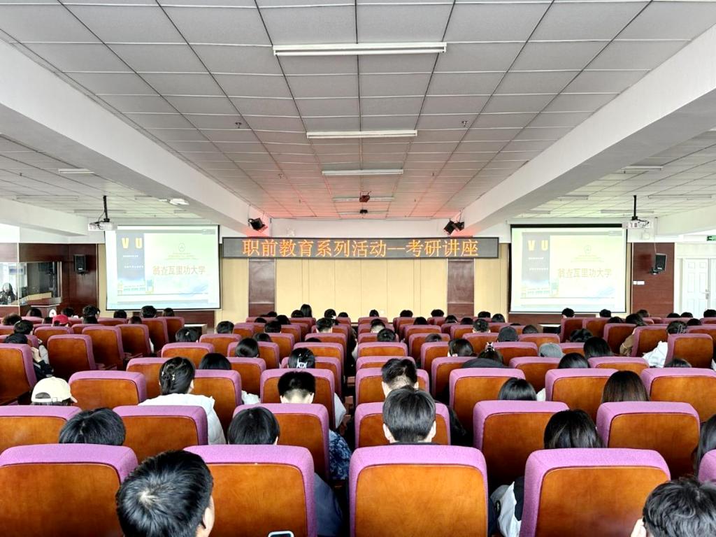 近日,由学校国际交流合作处主办、学生发展中心承办的职前教育系列活动之出国考研讲座在图书馆501会议室举行。本次讲座由学校国际交流合作处副处长赵丹丹主持,全校各专业300余名师生参加。讲座邀请泰国翁查瓦里功大学主讲人在线上对我校学生进行宣讲。VU国际处处长李慧珊首先对泰国翁查瓦里功大学优势学科、特色课程、申请流程、奖学金政策等内容进行了详细介绍,校长助理Aaron JIANG主讲学校专业设置以及课程设置,毕业要求...