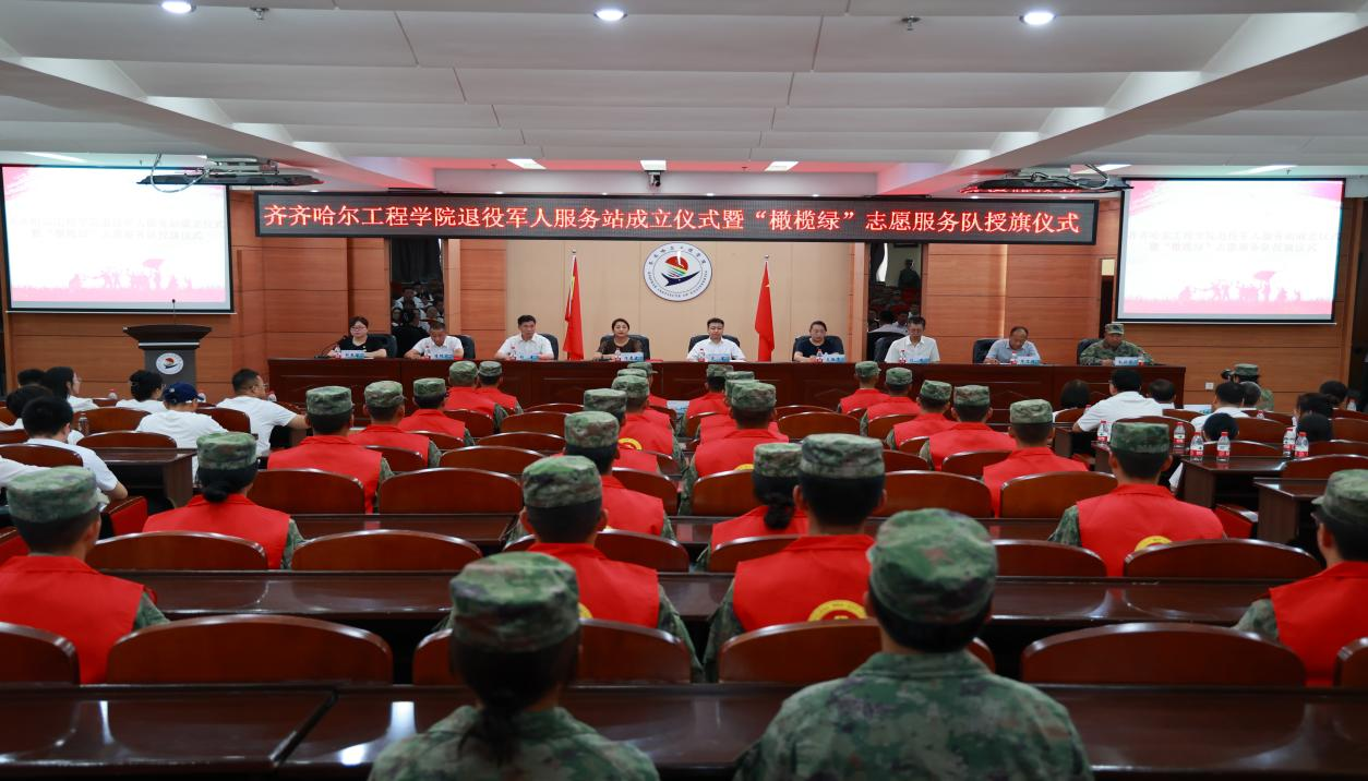 7月22日上午,学校在图书馆601报告厅举行退役军人服务站成立仪式暨“橄榄绿”志愿服务队授旗仪式。市退役军人事务局党组书记、局长吴寒,党组成员、副局长杨军,市退役军人服务中心主任刘成,龙沙区退役军人事务局局长徐万柱等领导,学校党委副书记、常务副院长陈景鑫、学生工作处负责人王丽萍,武装部副部长孙晓芳,各系党总支副书记、辅导员、“橄榄绿”志愿者代表及学长教官团全体成员参加仪式。仪式在庄严的国歌声中拉开帷...